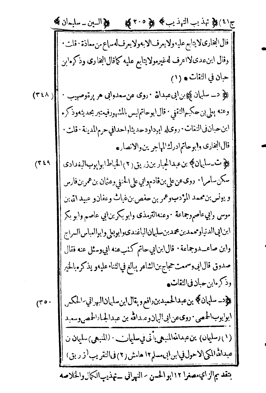 350- "د – سليمان" بن عبد الحميد بن رافع ويقال ابن سليمان البهراني الحكمي أبو أيوب الحمصي روى عن أبي اليمان وعبد الله بن عبد الجبار الحمصي وسعيد