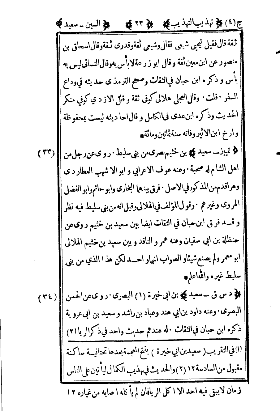 34- "د س ق- سعيد" بن أبي خيرة1 البصري روى عن الحسن البصري وعنه أبو داود بن أبي هند وعباد بن راشد وسعيد بن أبي عروبة ذكره ابن حبان في الثقات له عندهم حديث واحد في ذكر الربا2