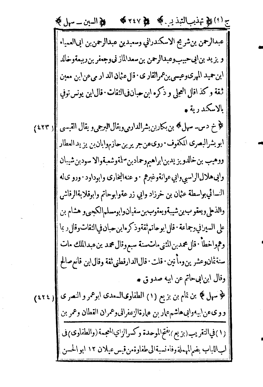 435- "سهل" بن تمام بن بزيع1 الطفاوي السعدي أبو عمرو النصري روى عن أبيه وأبي هاشم عمار بن عمارة الزعفراني وعمران القطان وعمر بن