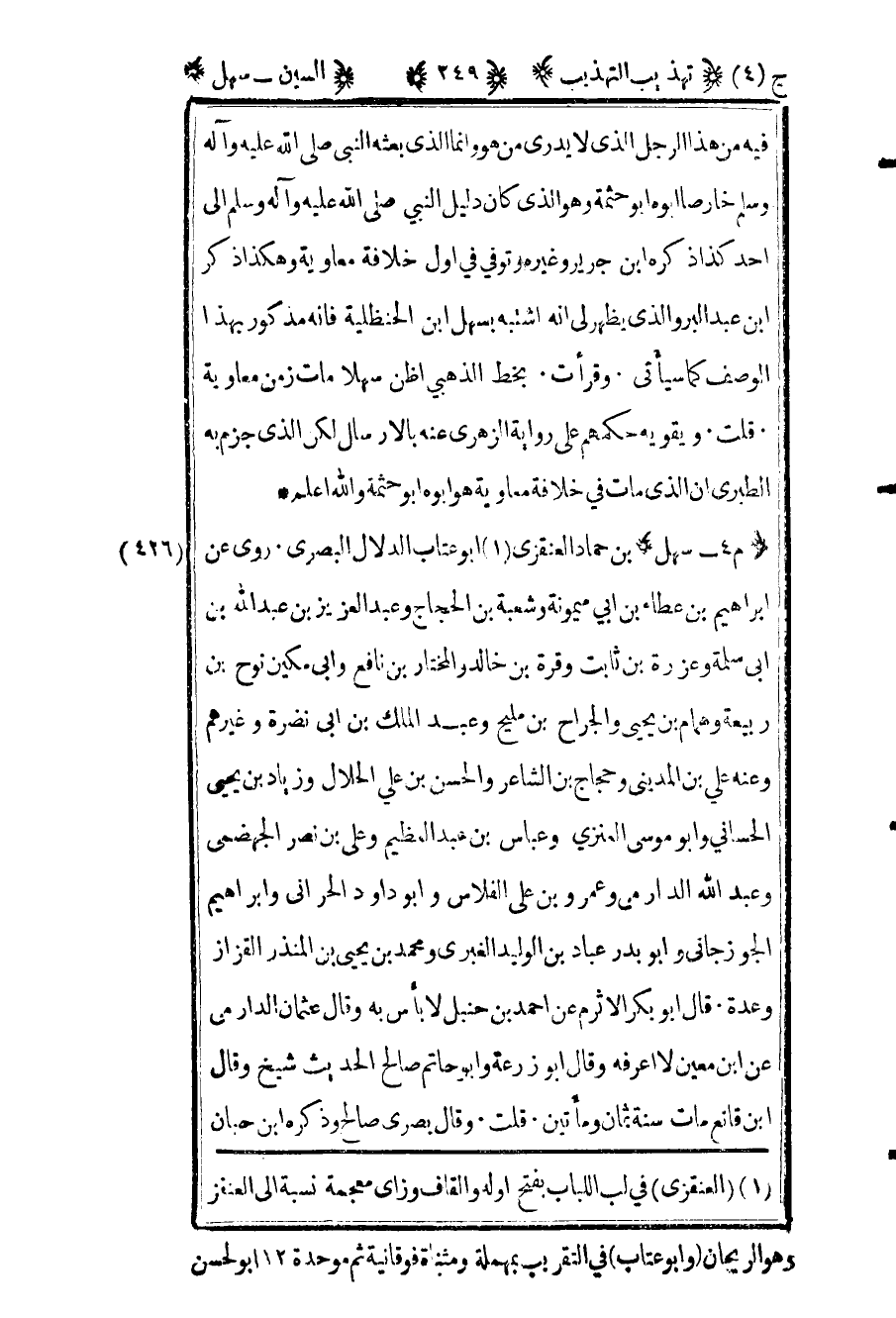 1 "العنقزي" في لب اللباب بفتح أوله والقاف وزاي معجمة نسبة إلى العنقز وهو الريحان "وأبو عتاب" في التقريب بمهملة ومثناة فوقانية ثم موحدة 12 أبو الحسن.