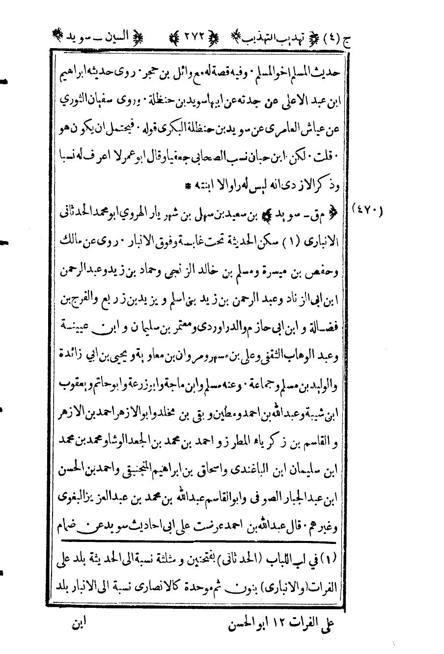 1 في لب اللباب "الحدثاني" بفتحتين ومثلثة نسبة إلى الحديثة بلد على الفرات "والأنباري" بنون ثم موحدة كالأنصاري نسبة إلى الأنبار بلد على الفرات 12 أبو الحسن.