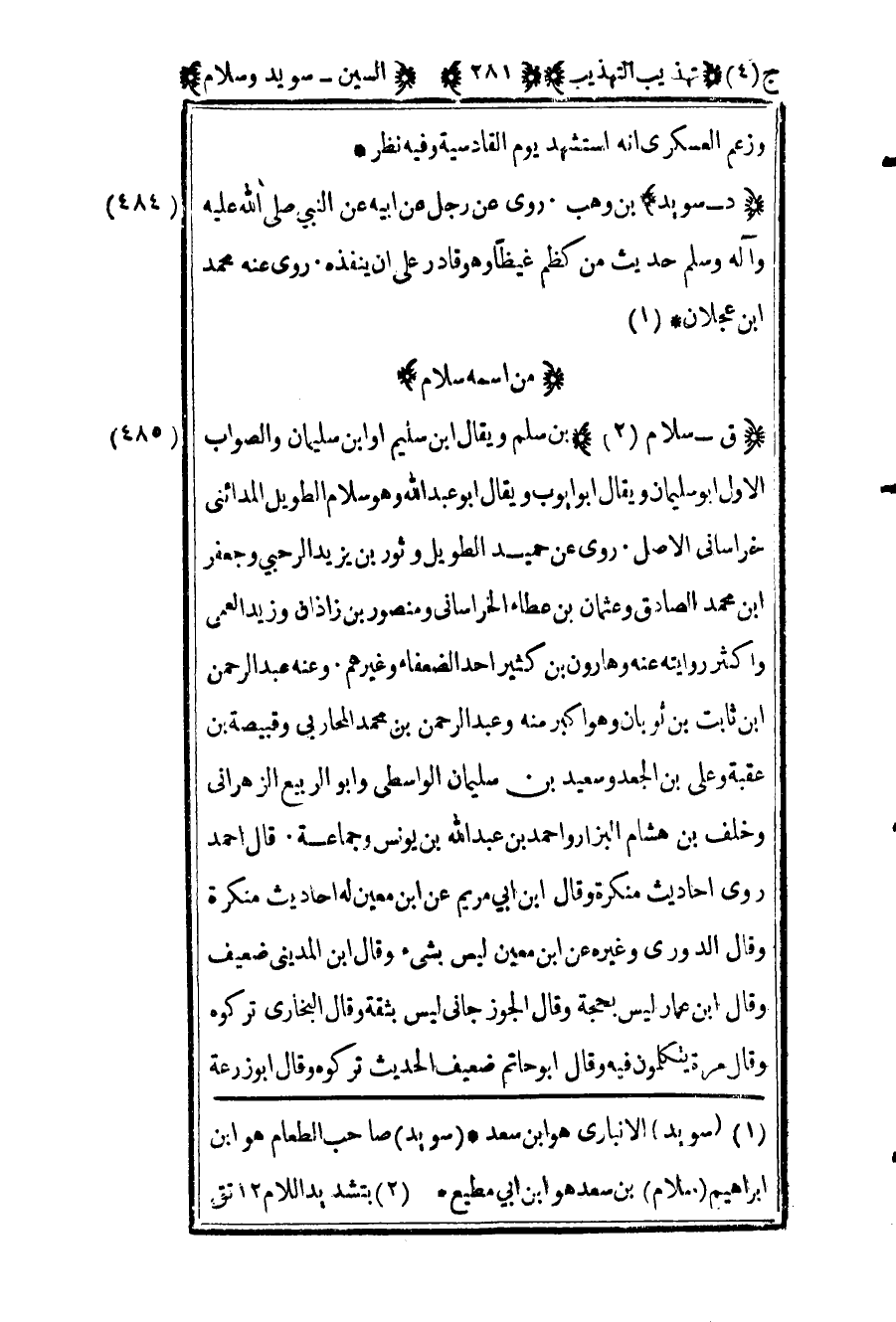 1 "سويد" الأنباري هو ابن سعد. *"سويد" صاحب الطعام هو ابن إبراهيم "سلام" بن سعد هو ابن أبي مطيع.
