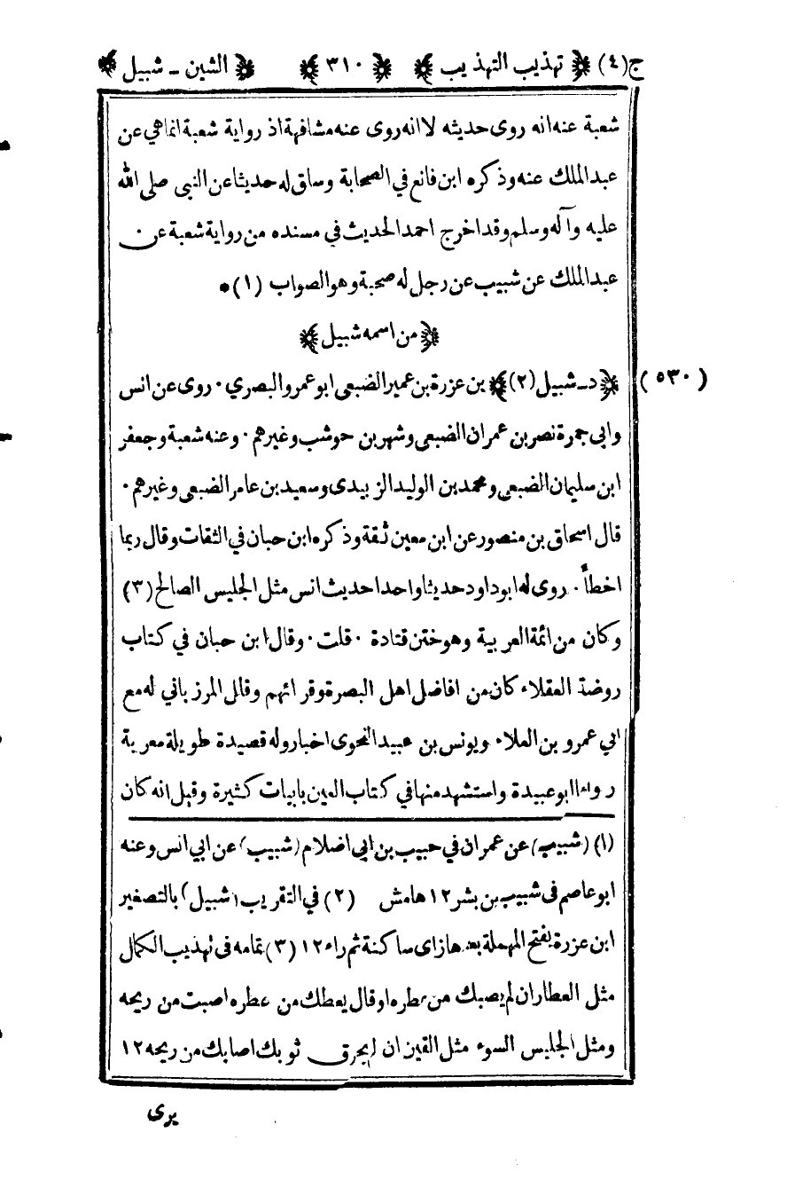 1 "شبيب" بن عمران في حبيب بن أبي اضلام "شبيب" عن أبي أنس وعنه أبو عاصم في شبيب بن بشر 12 هامش.
