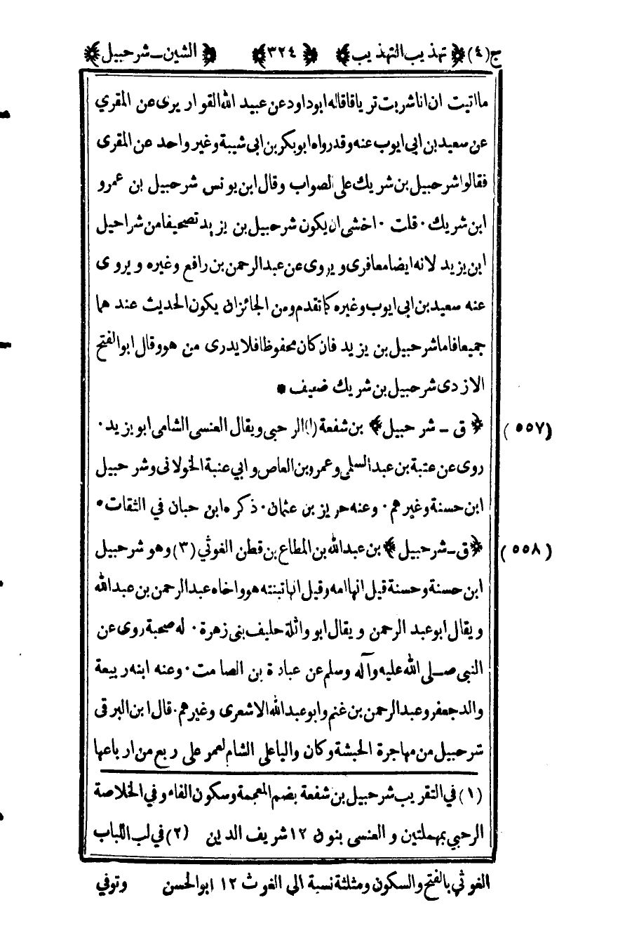 1 في التقريب شرحبيل بن شفعة بضم المعجمة وسكون الفاء وفي الخلاصة الرحبي بمهملتين والعنسى بنون 12 شرسف الدين.