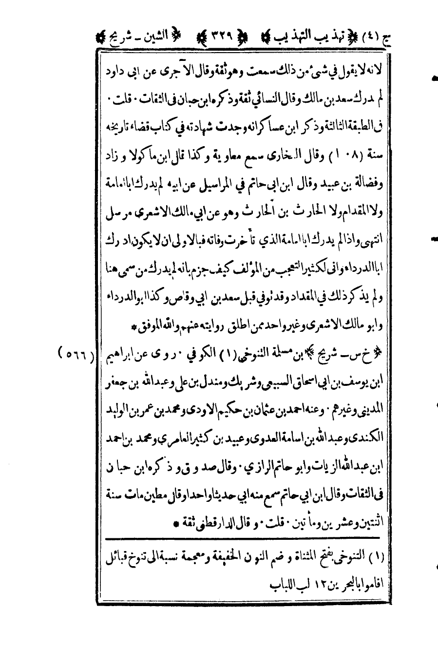 1 التنوخي بفتح المثناة وضم النون الخفيفة ومعجمة نسبة إلى تنوخ قبائل أقاموا بالبحرين 12 لب اللباب.
