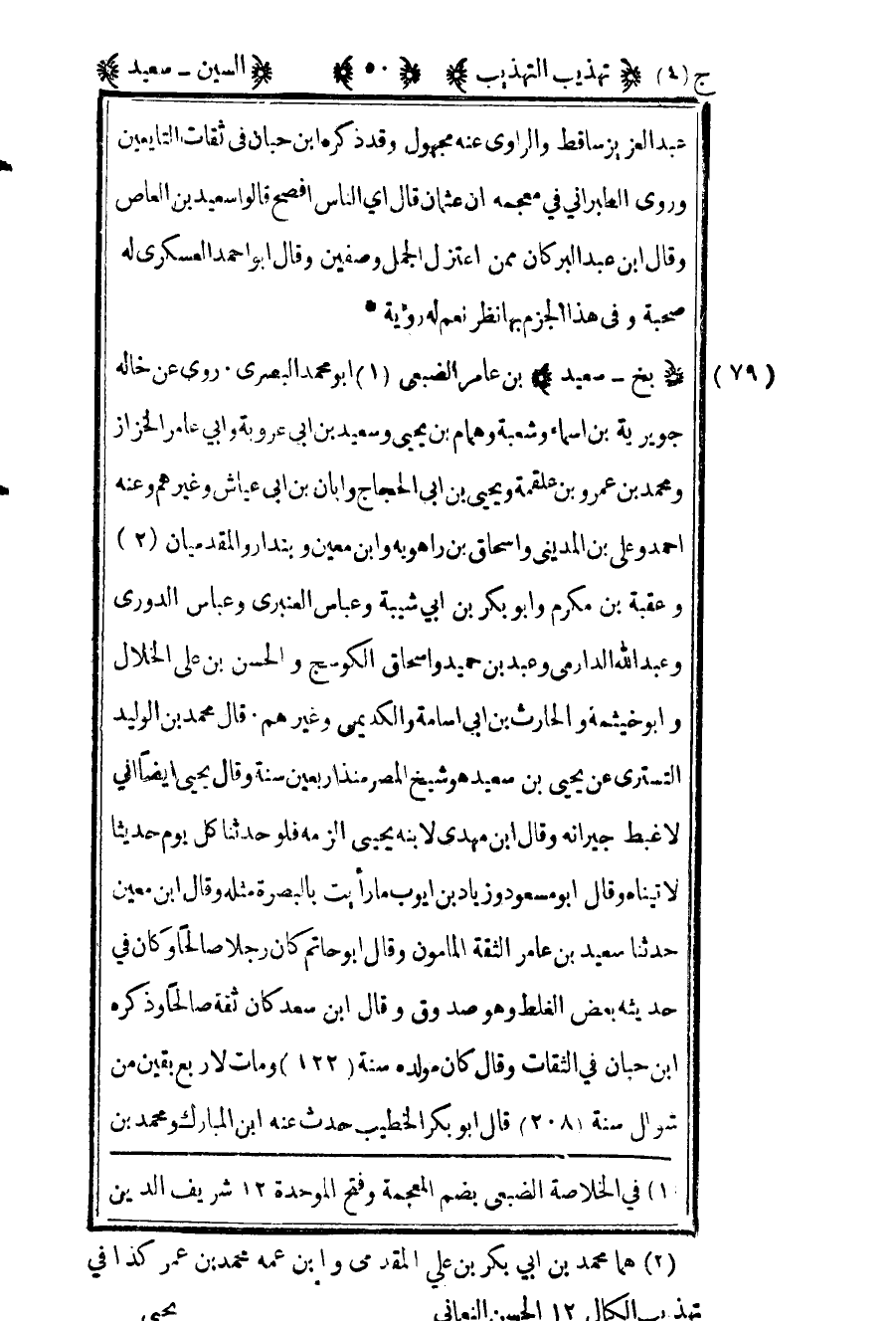 1 في الخلاصة الضبعي بضم المعجمة وفتح الموحدة 12 شريف الدين.