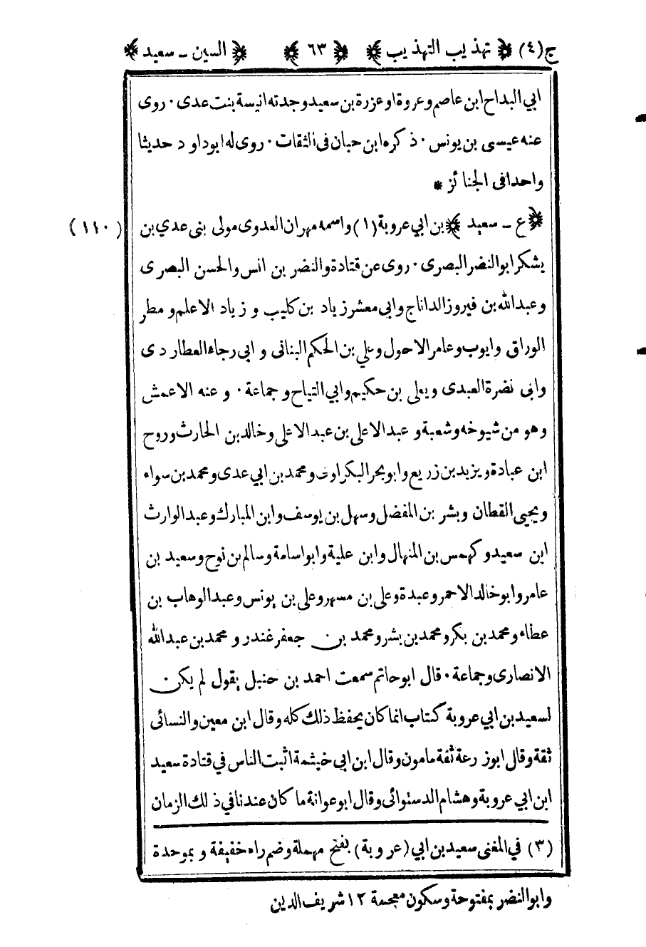 1 في المغني سعيد بن أبي "عروبة" بفتح مهملة وضم راء خفيفة وبموحدة وأبو النضر بمفتوحة وسكون معجمة 12 شريف الدين.