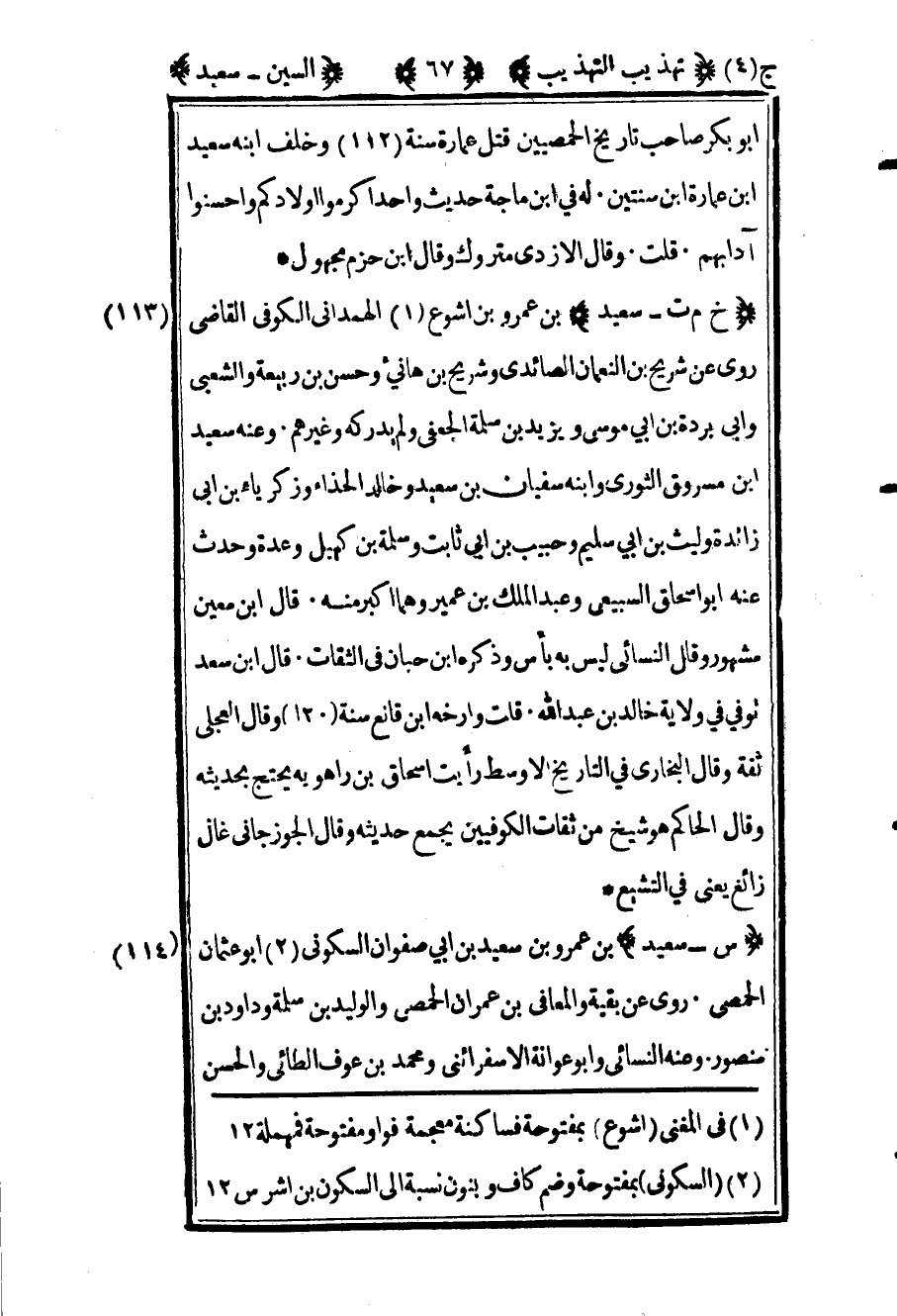 114- "س – سعيد" بن عمرو بن سعيد بن أبي صفوان السكوني2 أبو عثمان الحمصي روى عن بقية والمعافى بن عمران الحمصي والوليد بن سلمة وداود بن منصور وعنه النسائي وأبو عوانة الإسفرائيني ومحمد بن عوف الطائي والحسن