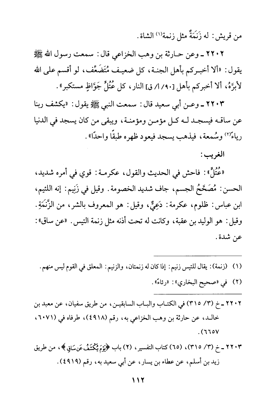 2202 - خ (3/ 315) في الكتاب والباب السابقين، من طريق سفيان، عن معبد بن خالد، عن حارثة بن وهب الخزاعي به، رقم (4918)، طرفاه في (6071، 6657).