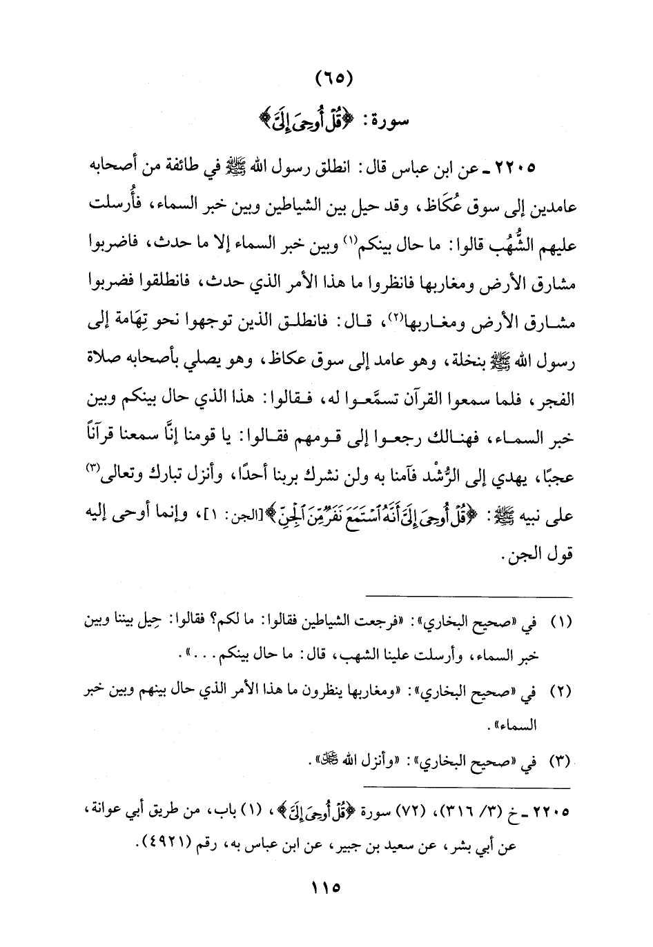 2205 - خ (3/ 316)، (72) سورة {قُلْ أُوحِيَ إِلَيَّ}، (1) باب، من طريق أبي عوانة، عن أبي بشر، عن سعيد بن جبير، عن ابن عباس به، رقم (4921).