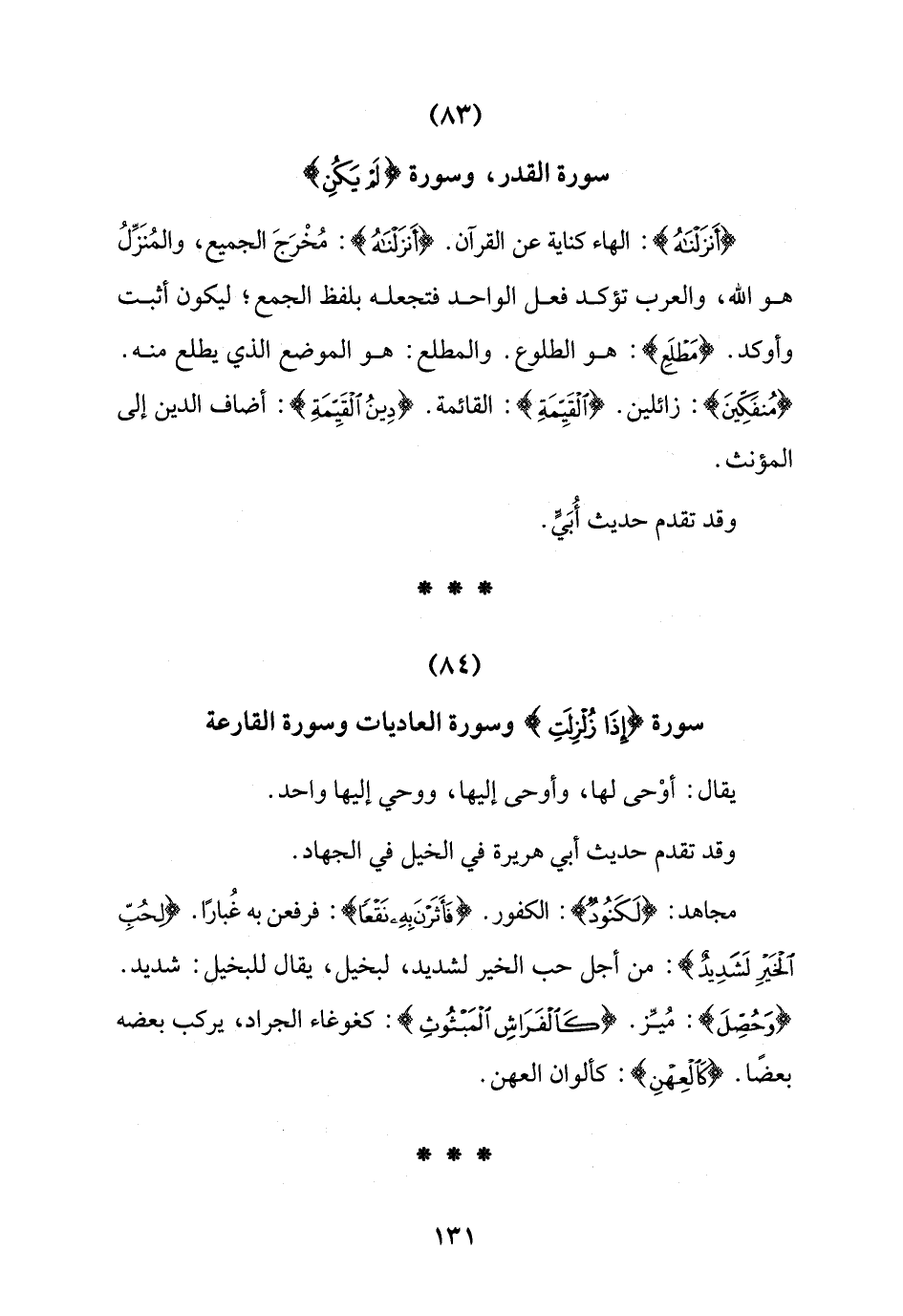 (84) سورة {إِذَا زُلْزِلَتِ} وسورة العاديات وسورة القارعة