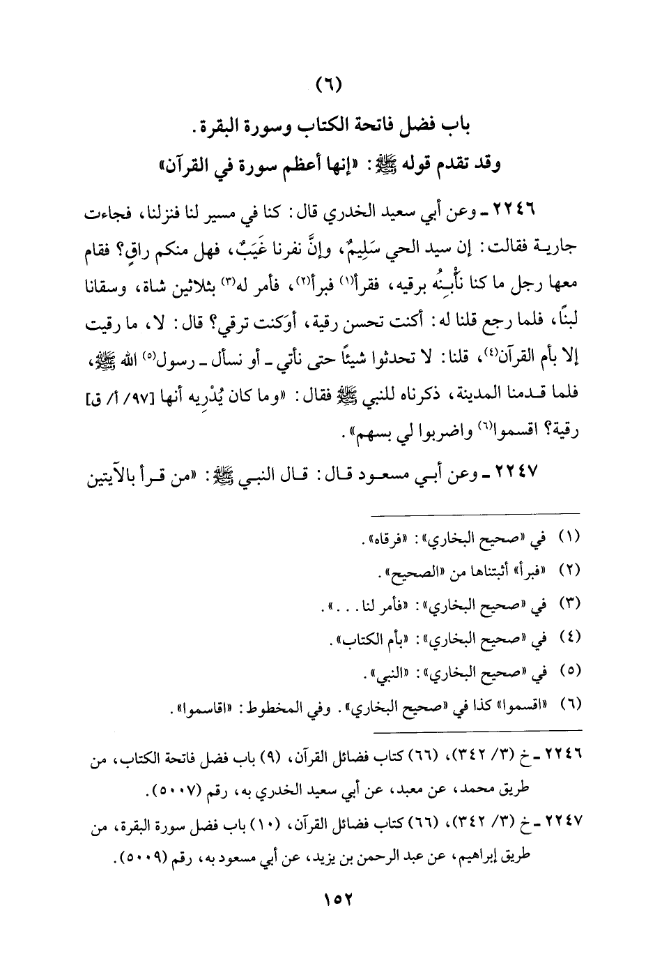 (6) باب فضل فاتحة الكتاب وسورة البقرة.