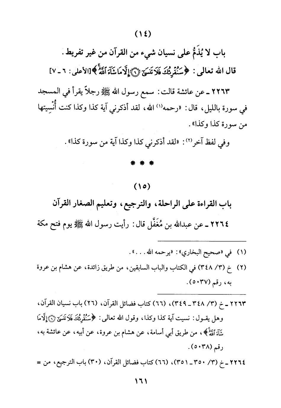 (14) باب لا يُذَمُّ على نسيان شيء من القرآن من غير تفريط.