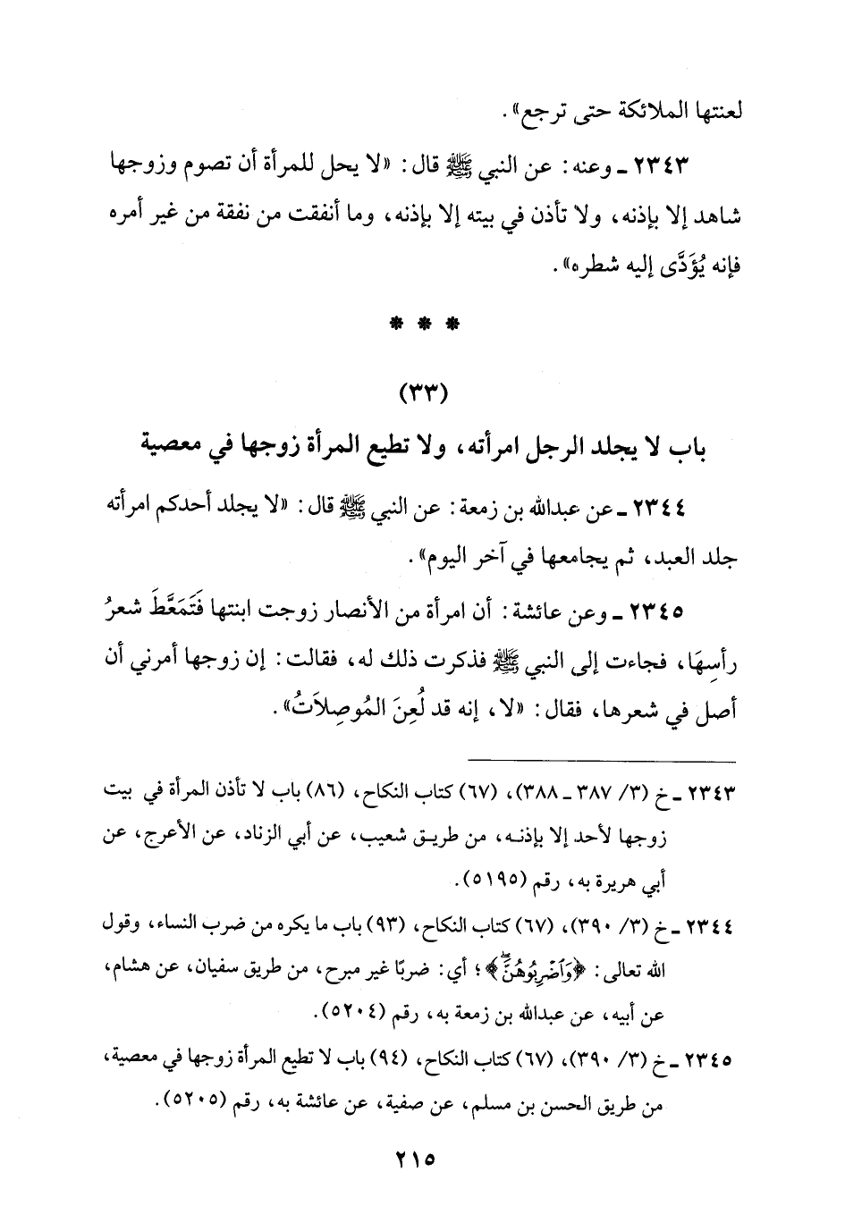 (33) باب لا يجلد الرجل امرأته، ولا تطيع المرأة زوجها في معصية