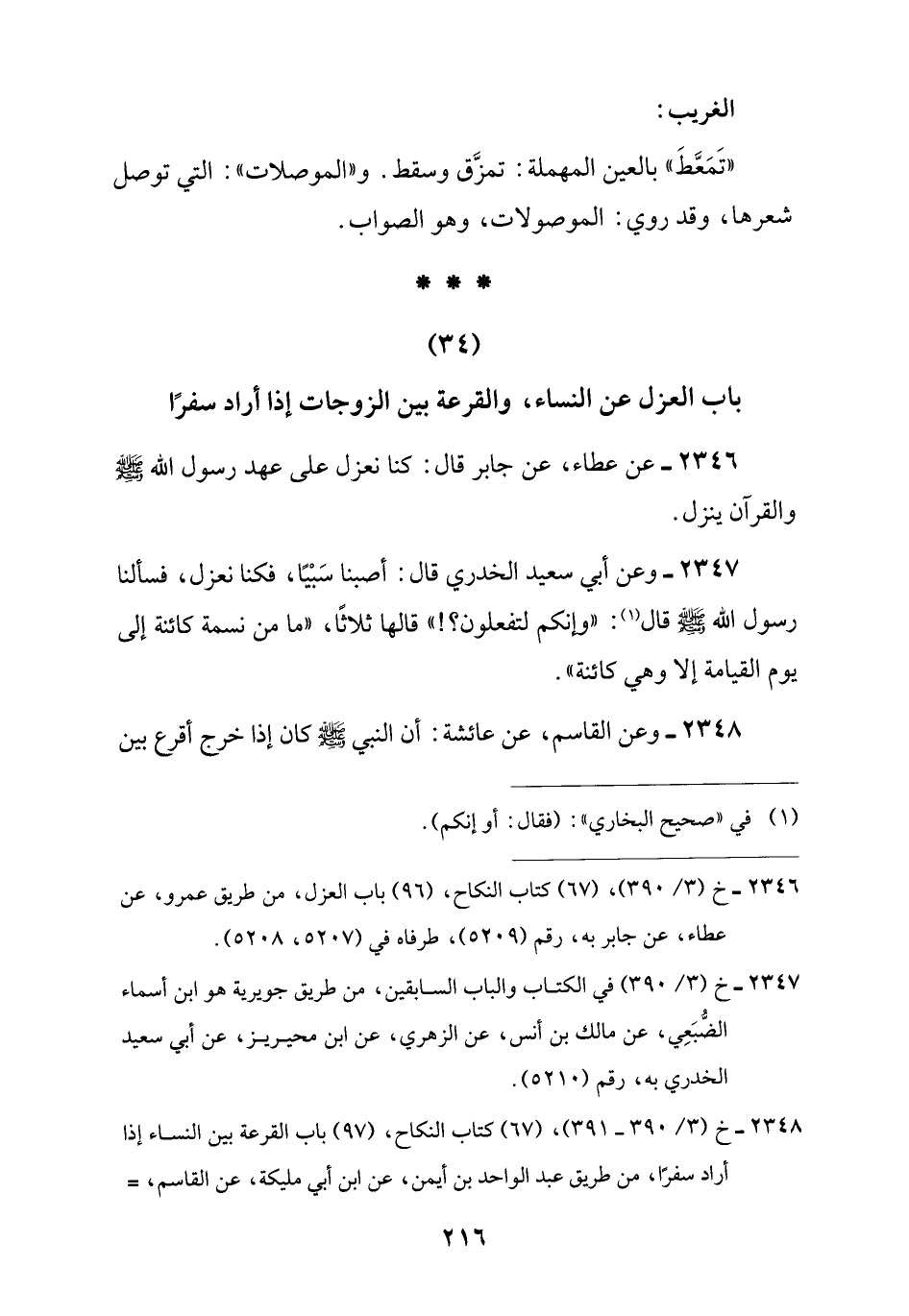 (34) باب العزل عن النساء، والقرعة بين الزوجات إذا أراد سفرًا
