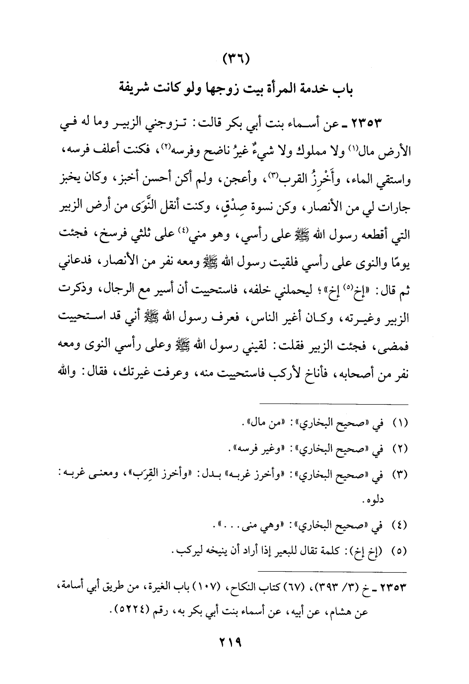 (36) باب خدمة المرأة بيت زوجها ولو كانت شريفة