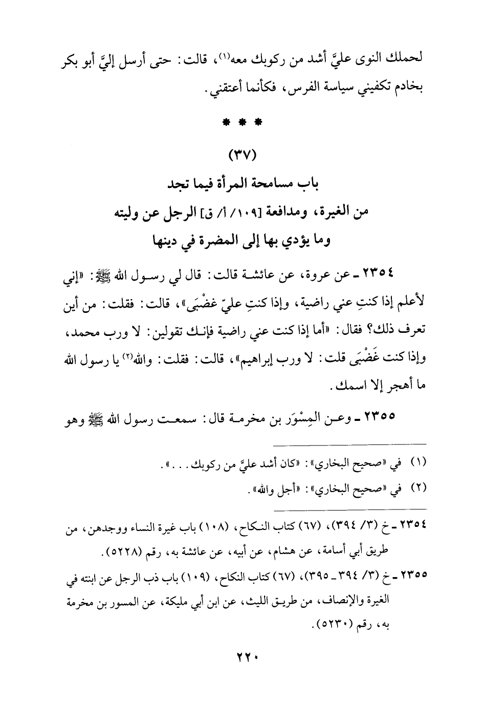 (37) باب مسامحة المرأة فيما تجد من الغيرة، ومدافعة الرجل عن وليته وما يؤدي بها إلى المضرة في دينها