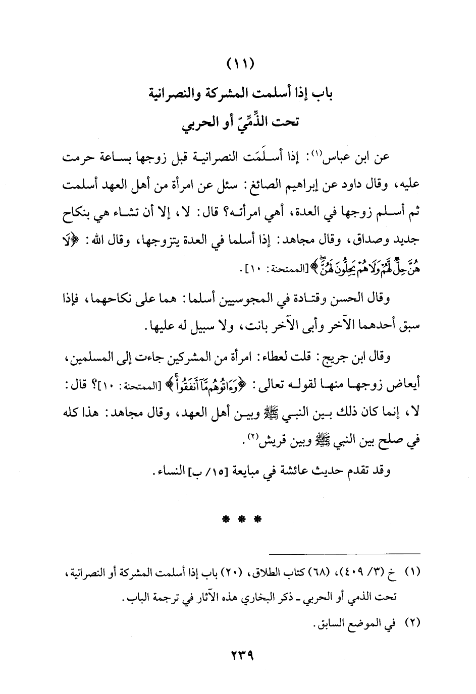 (11) باب إذا أسلمت المشركة والنصرانية تحت الذِّمِّيّ أو الحربي