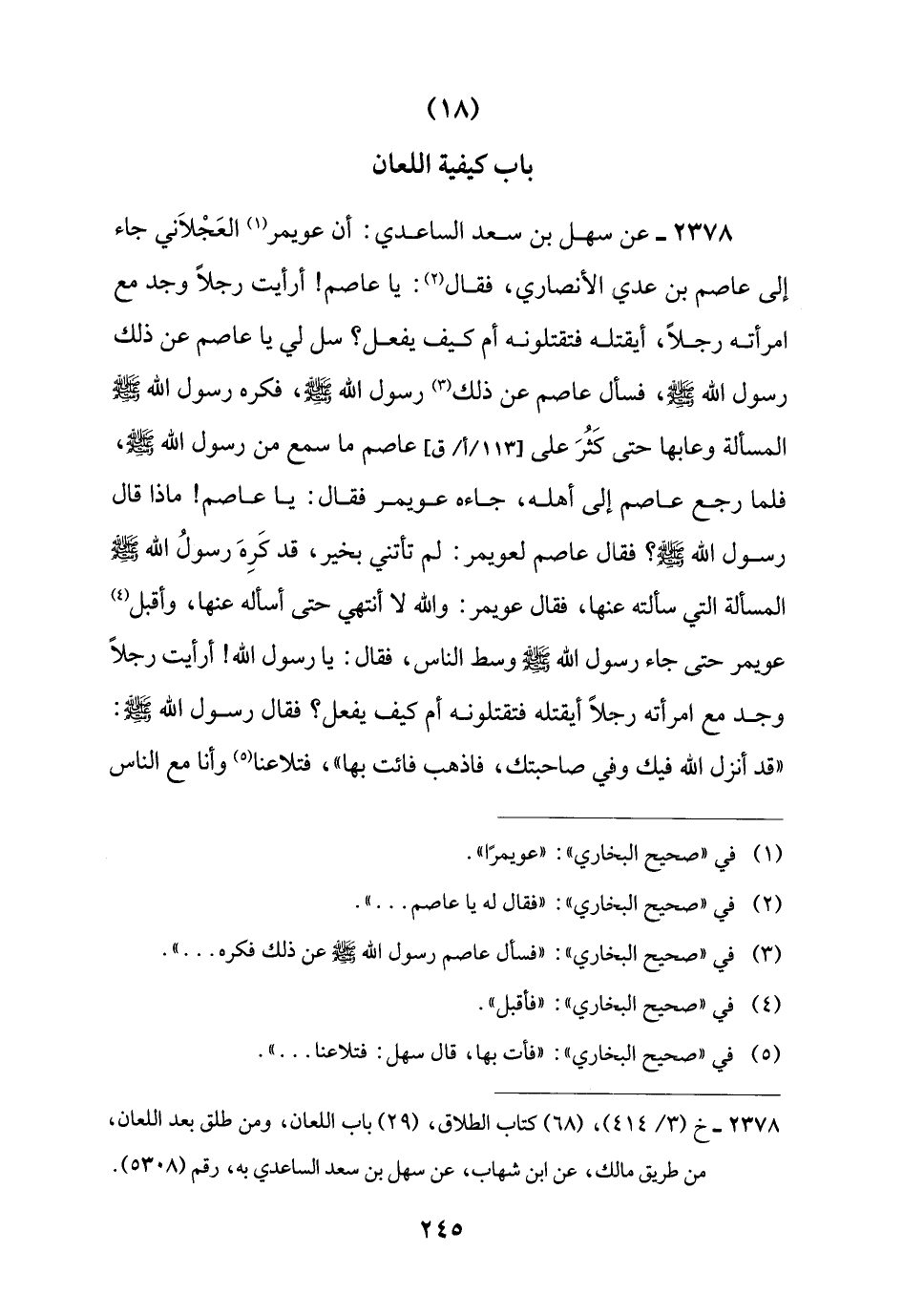 2378 - خ (3/ 414)، (68) كتاب الطلاق، (29) باب اللعان، ومن طلق بعد اللعان، من طريق مالك، عن ابن شهاب، عن سهل بن سعد الساعدي به، رقم (5308).