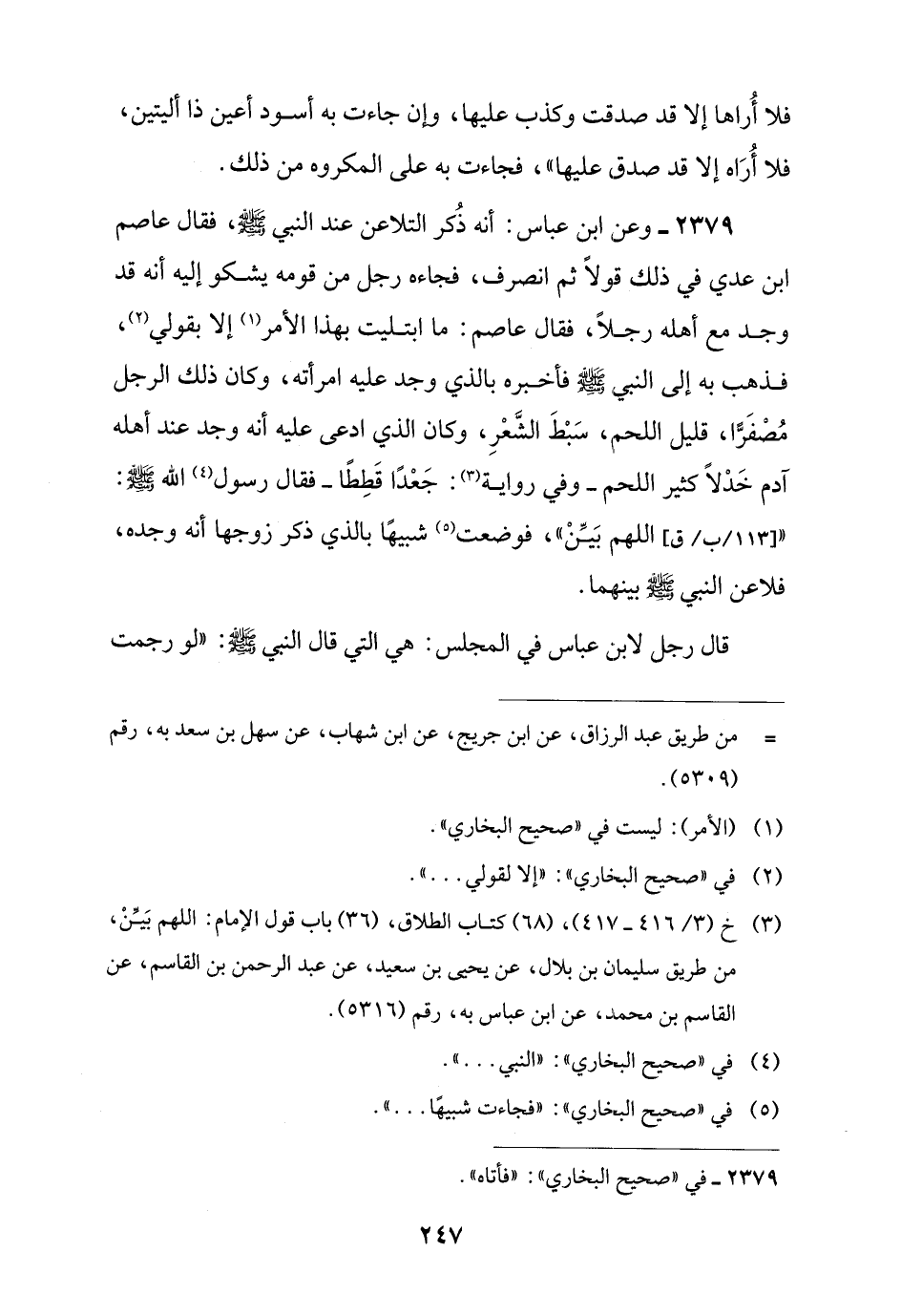 (¬3) خ (3/ 416 - 417)، (68) كتاب الطلاق، (36) باب قول الإمام: اللهم بَيِّنْ، من طريق سليمان بن بلال، عن يحيى بن سعيد، عن عبد الرحمن بن القاسم، عن القاسم بن محمد، عن ابن عباس به، رقم (5316).
