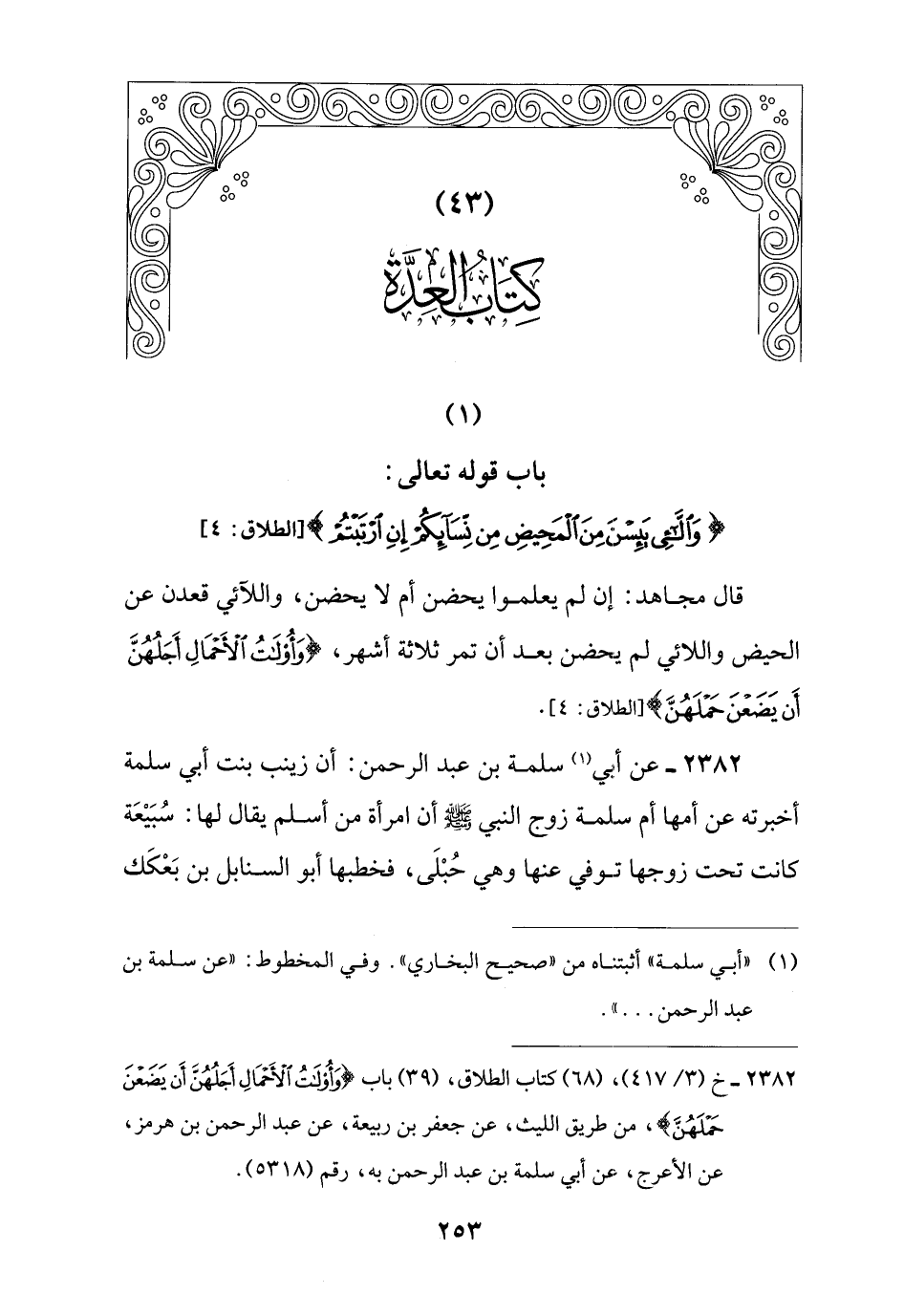 (1) باب قوله تعالى: {وَاللَّائِي يَئِسْنَ مِنَ الْمَحِيضِ مِنْ نِسَائِكُمْ إِنِ ارْتَبْتُمْ} [الطلاق: 4]