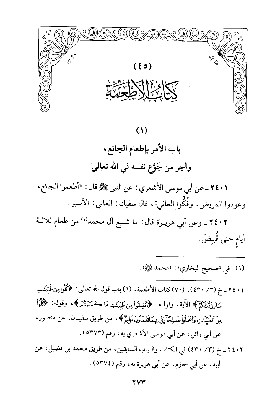 (1) باب الأمر بإطعام الجائع، وأجر من جَوَّع نفسه في اللَّه تعالى