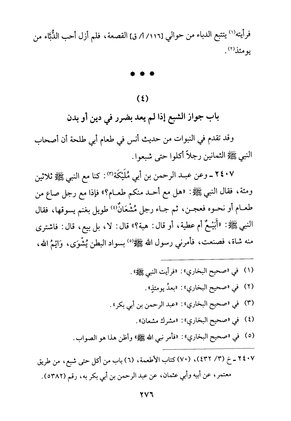 (4) باب جواز الشبع إذا لم يعد بضرر في دين أو بدن