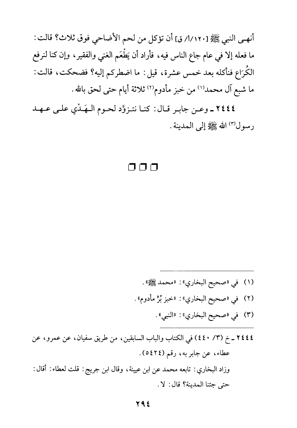 2444 - وعن جابر قال: كنا نتزوَّد لحوم الهَدْي على عهد رسول (¬3) اللَّه -صلى اللَّه عليه وسلم- إلى المدينة.