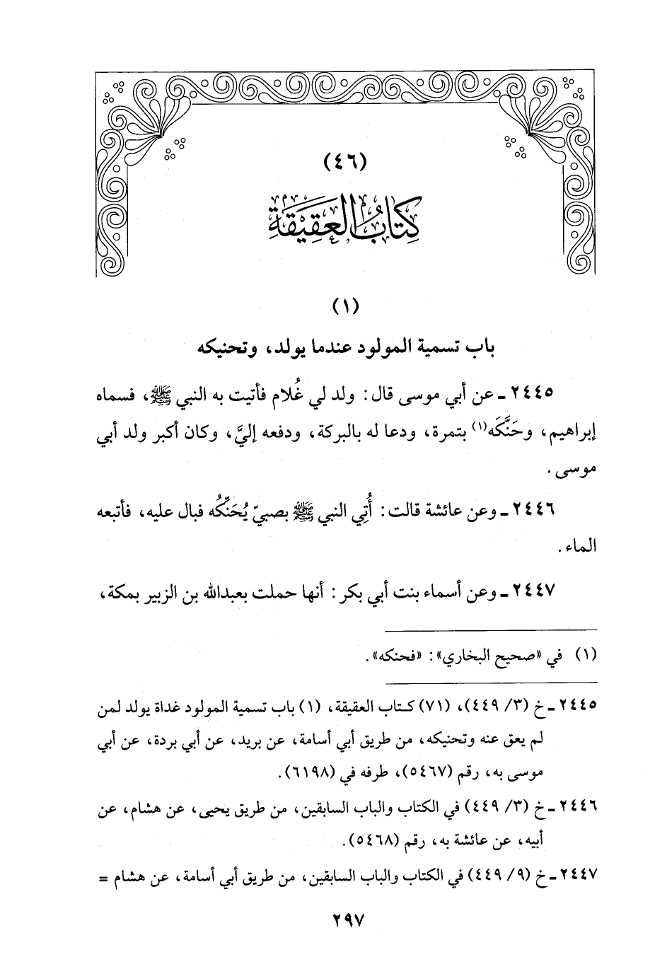 (1) باب تسمية المولود عندما يولد، وتحنيكه