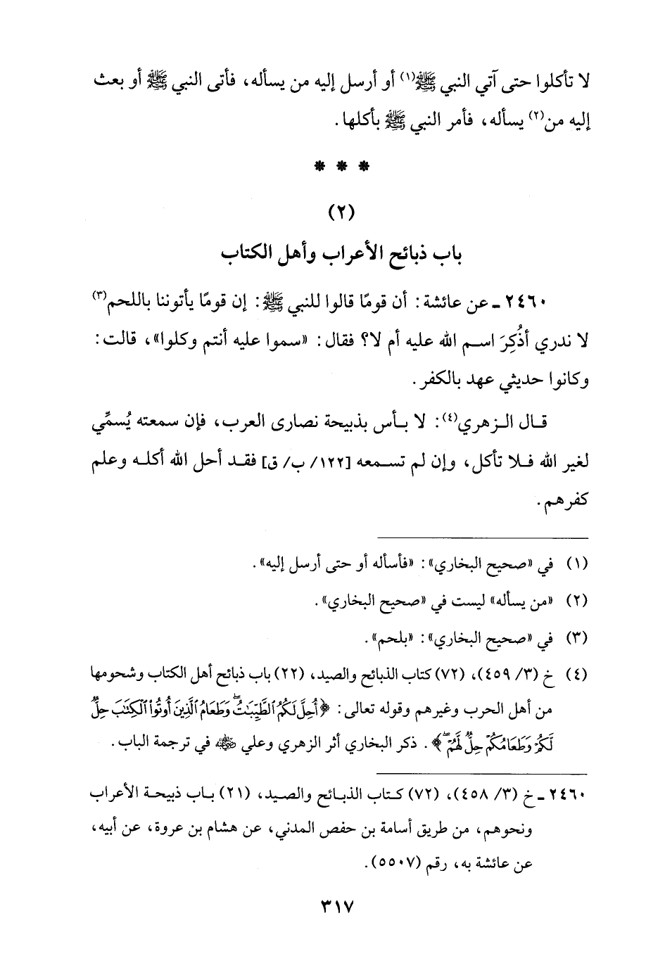 (2) باب ذبائح الأعراب وأهل الكتاب