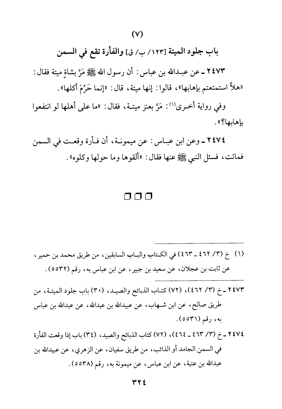 (7) باب جلود الميتة والفأرة تقع في السمن