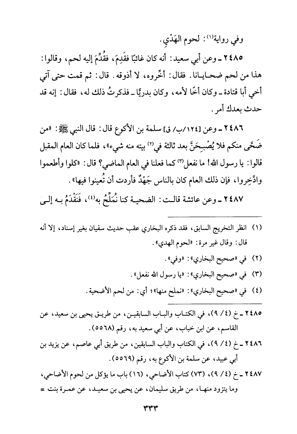 2487 - خ (4/ 9)، (73) كتاب الأضاحي، (16) باب ما يؤكل من لحوم الأضاحي، وما يتزود منها، من طريق سليمان، عن يحيى بن سعيد، عن عمرة بنت =
