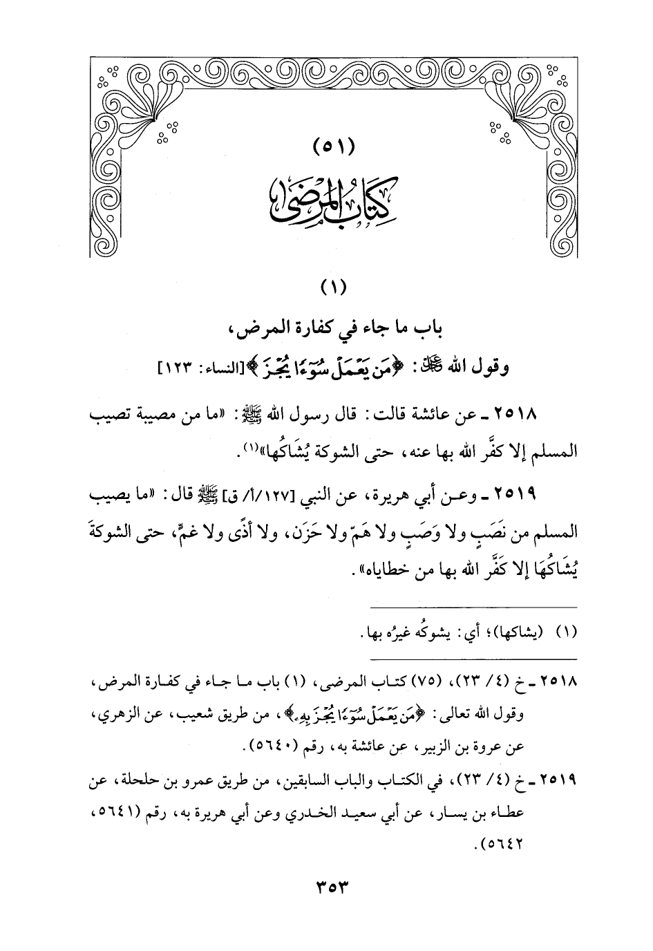 (1) باب ما جاء في كفارة المرض، وقول اللَّه عز وجل: {مَنْ يَعْمَلْ سُوءًا يُجْزَ} [النساء: 123]