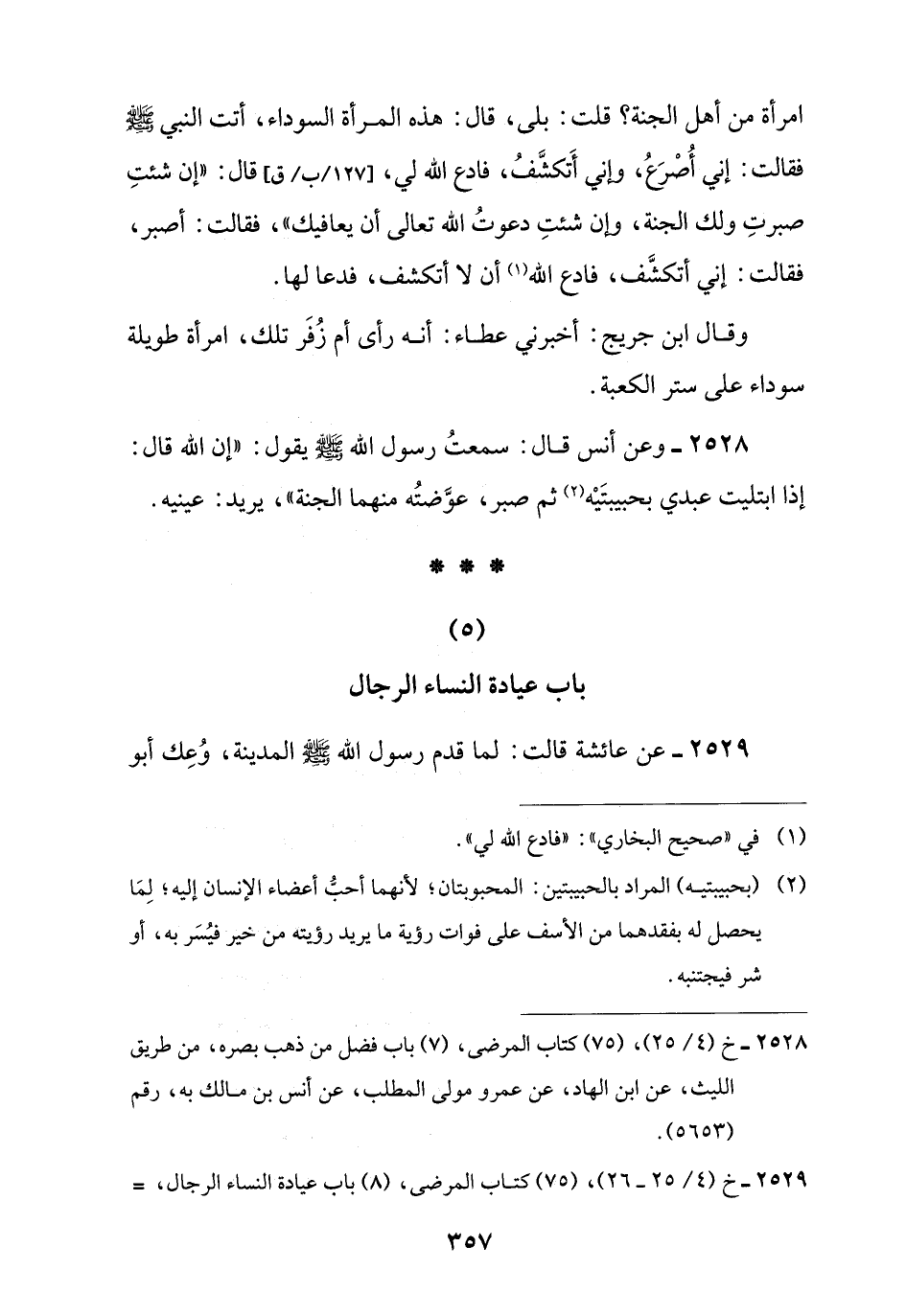 2529 - خ (4/ 25 - 26)، (75) كتاب المرضى، (8) باب عيادة النساء الرجال، =