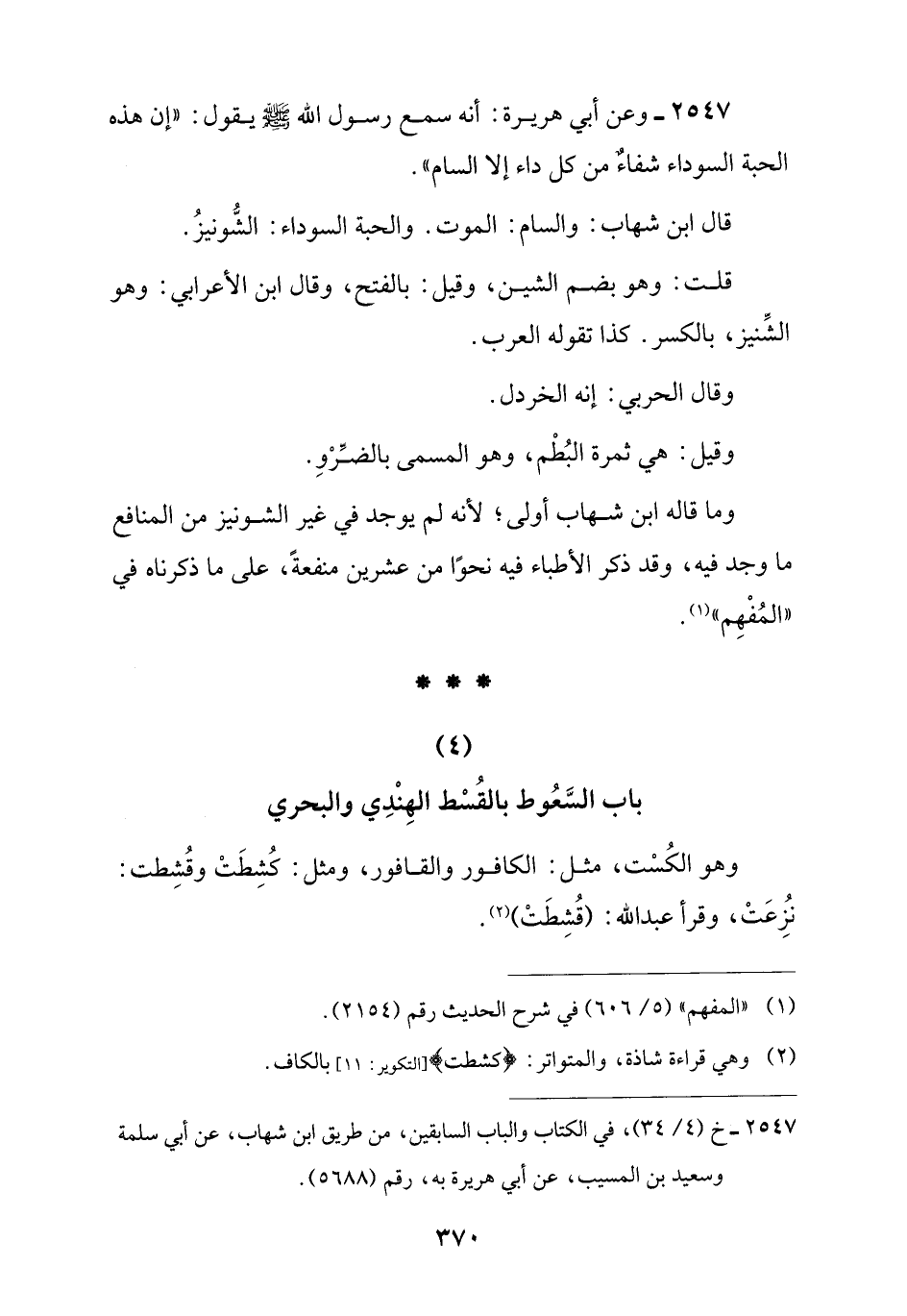 (4) باب السَّعُوط بالقُسْط الهِنْدِي والبحري
