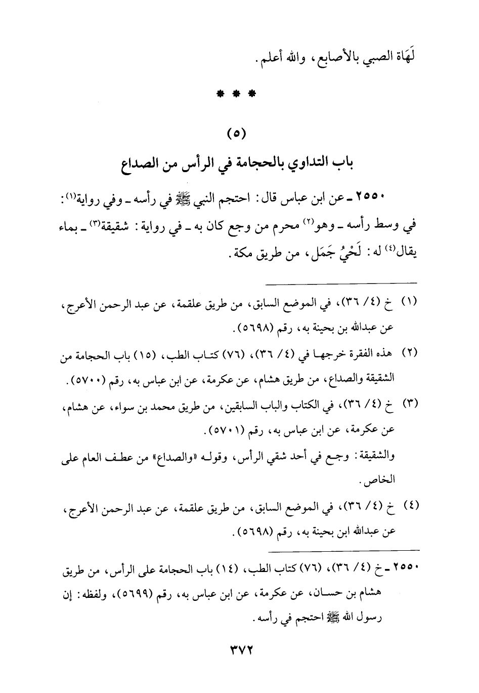 (5) باب التداوي بالحجامة في الرأس من الصداع