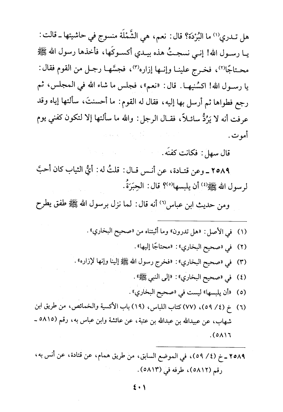 2589 - خ (4/ 59)، في الموضع السابق، من طريق همام، عن قتادة، عن أنس به، رقم (5812)، طرفه في (5813).