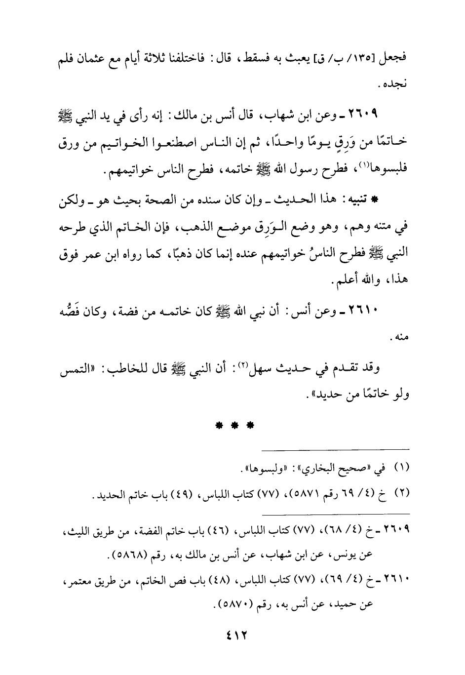 (¬2) خ (4/ 69 رقم 5871)، (77) كتاب اللباس، (49) باب خاتم الحديد.