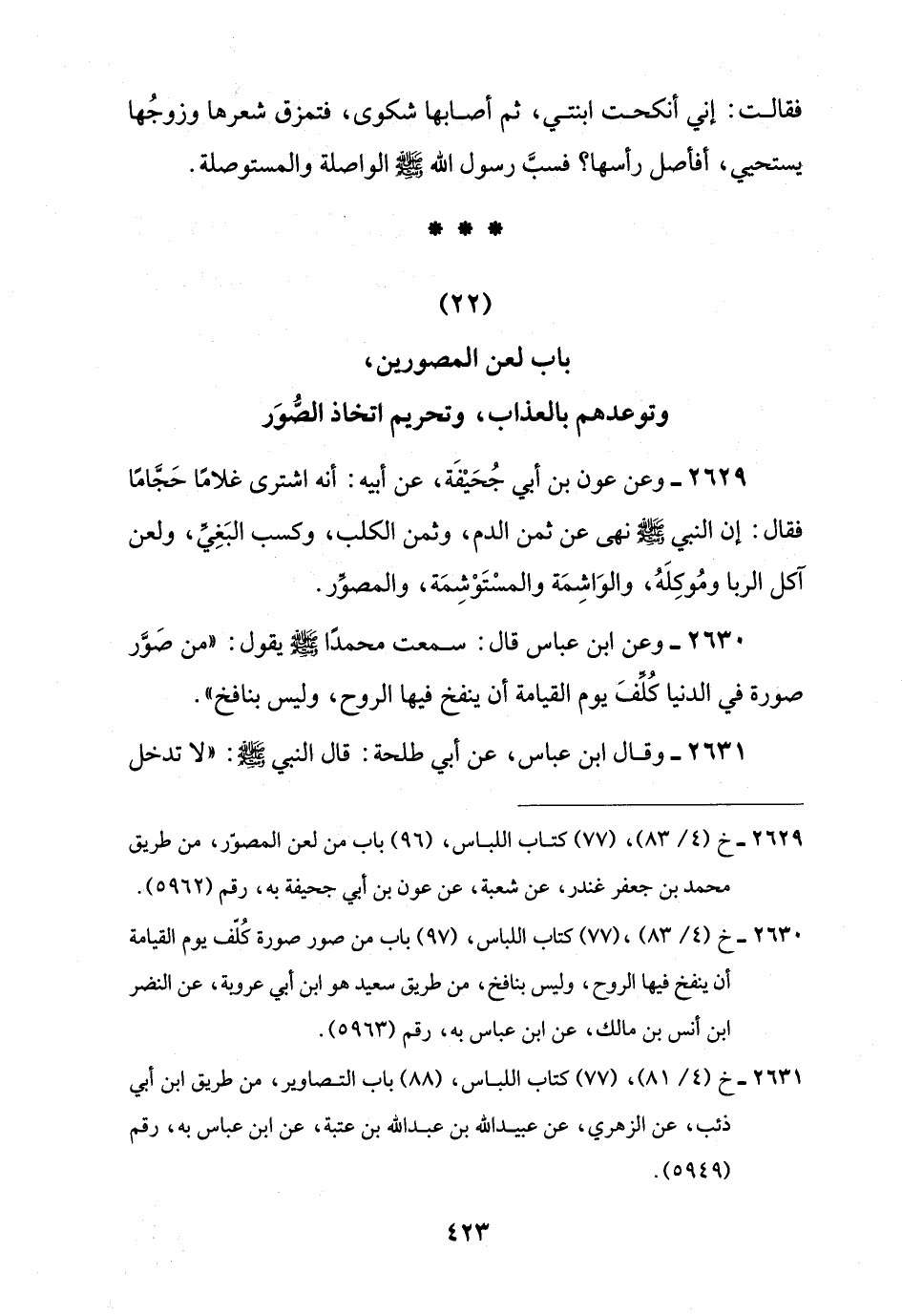 2629 - خ (4/ 83)، (77) كتاب اللباس، (96) باب من لعن المصوّر، من طريق محمد بن جعفر غندر، عن شعبة، عن عون بن أبي جحيفة به، رقم (5962).