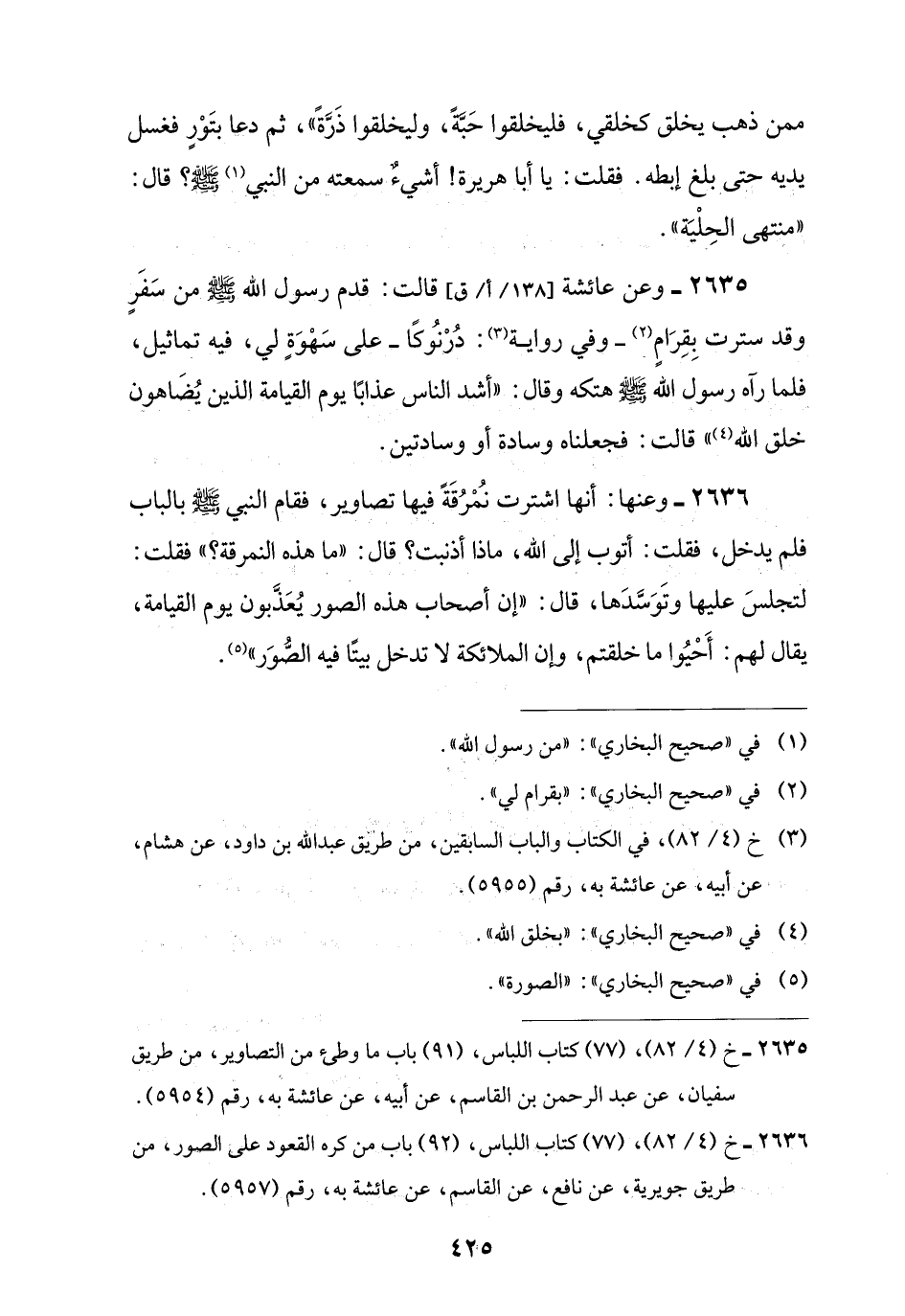 2635 - خ (4/ 82)، (77) كتاب اللباس، (91) باب ما وطئ من التصاوير، من طريق سفيان، عن عبد الرحمن بن القاسم، عن أبيه، عن عائشة به، رقم (5954).