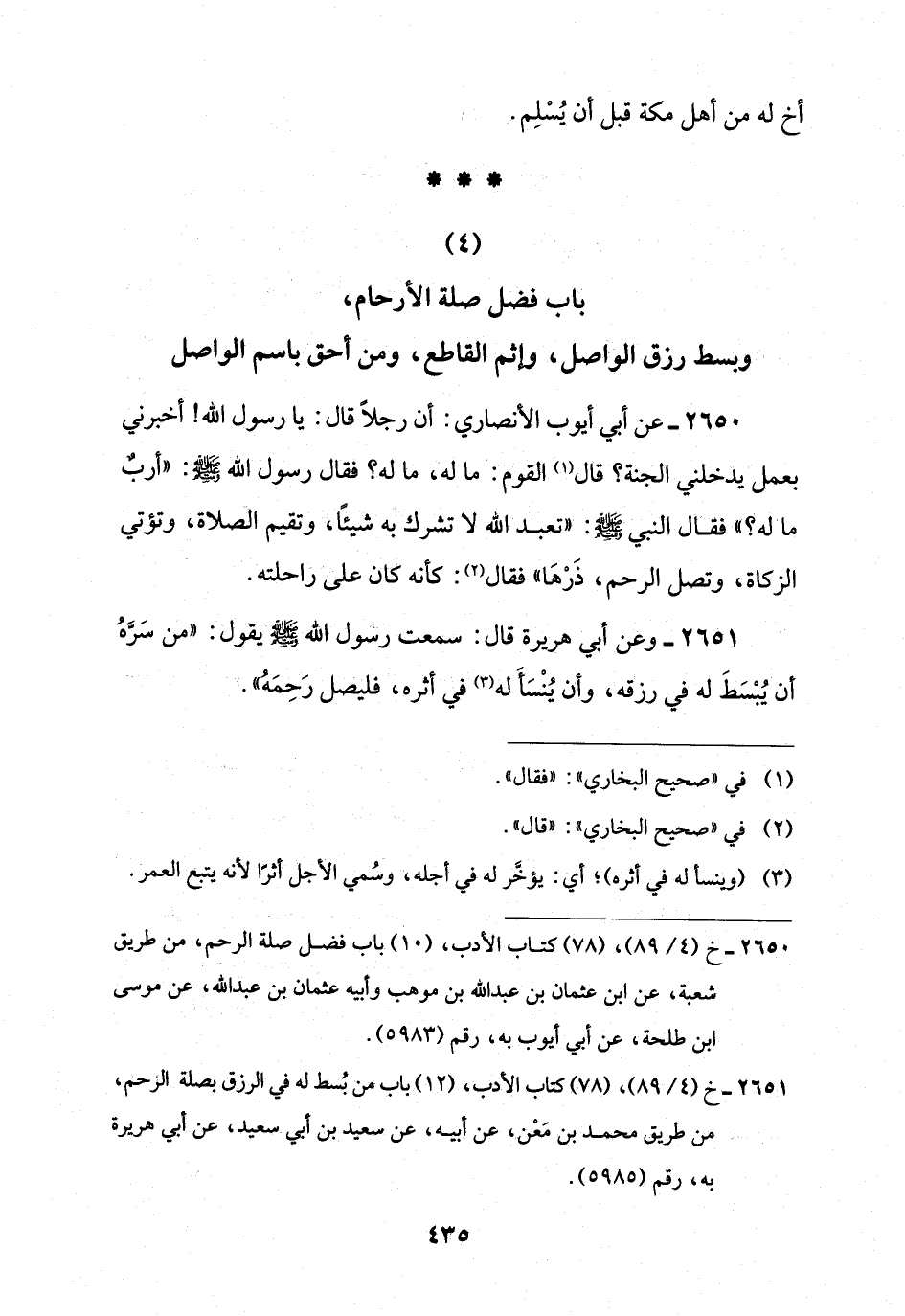 (4) باب فضل صلة الأرحام، وبسط رزق الواصل، وإثم القاطع، ومن أحق باسم الواصل