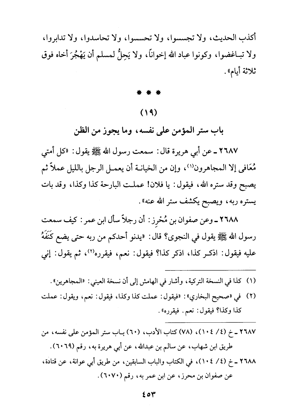 (19) باب ستر المؤمن على نفسه، وما يجوز من الظن