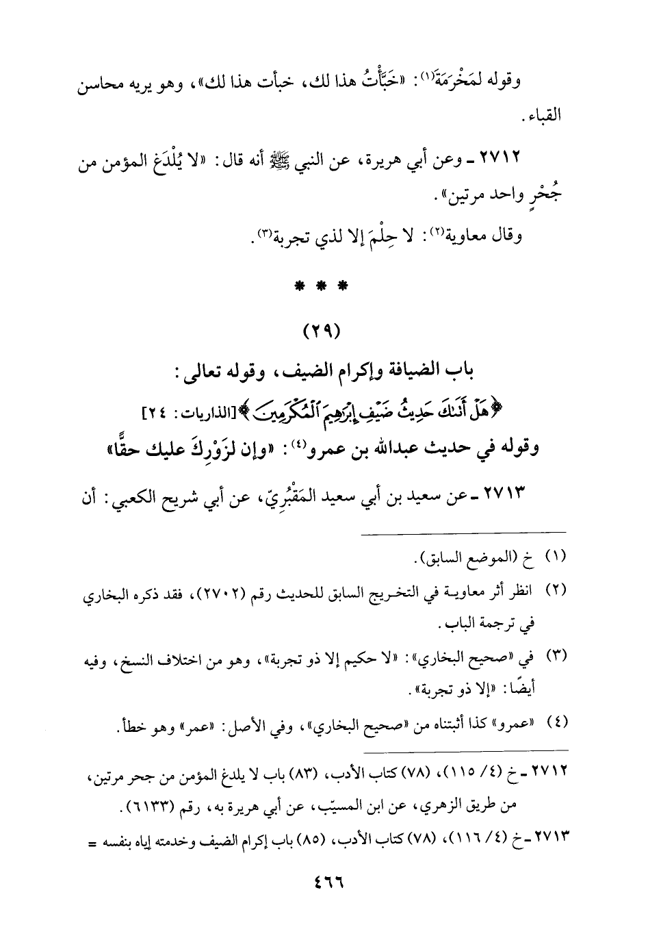 2712 - خ (4/ 115)، (78) كتاب الأدب، (83) باب لا يلدغ المؤمن من جحر مرتين، من طريق الزهري، عن ابن المسيّب، عن أبي هريرة به، رقم (6133).