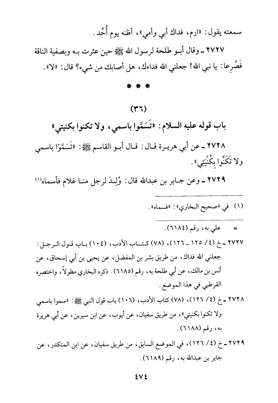 (36) باب قوله عليه السلام: "تَسَمَّوا باسمي، ولا تكنوا بكنيتي"