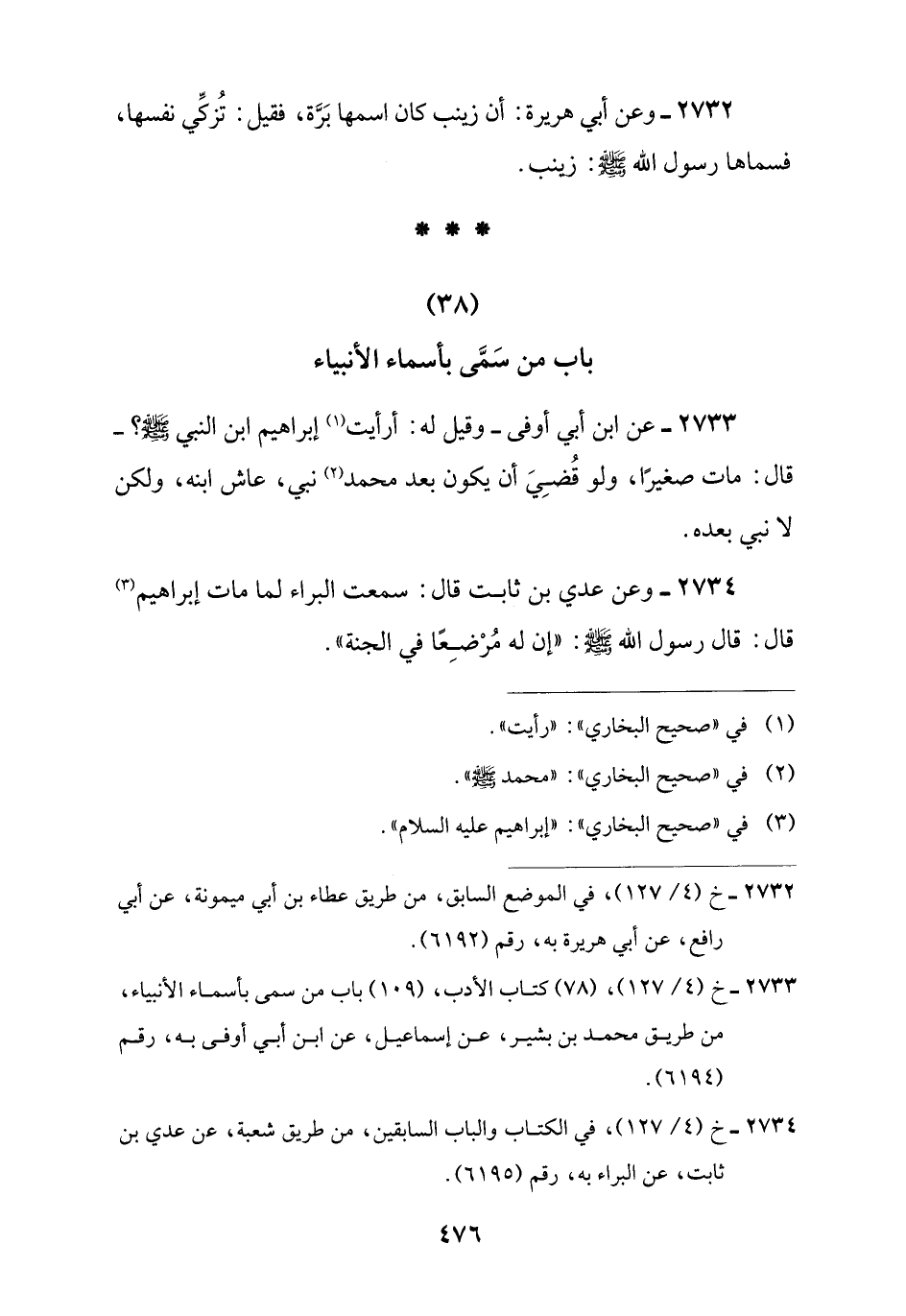 2733 - خ (4/ 127)، (78) كتاب الأدب، (109) باب من سمى بأسماء الأنبياء، من طريق محمد بن بشير، عن إسماعيل، عن ابن أبي أوفى به، رقم (6194).