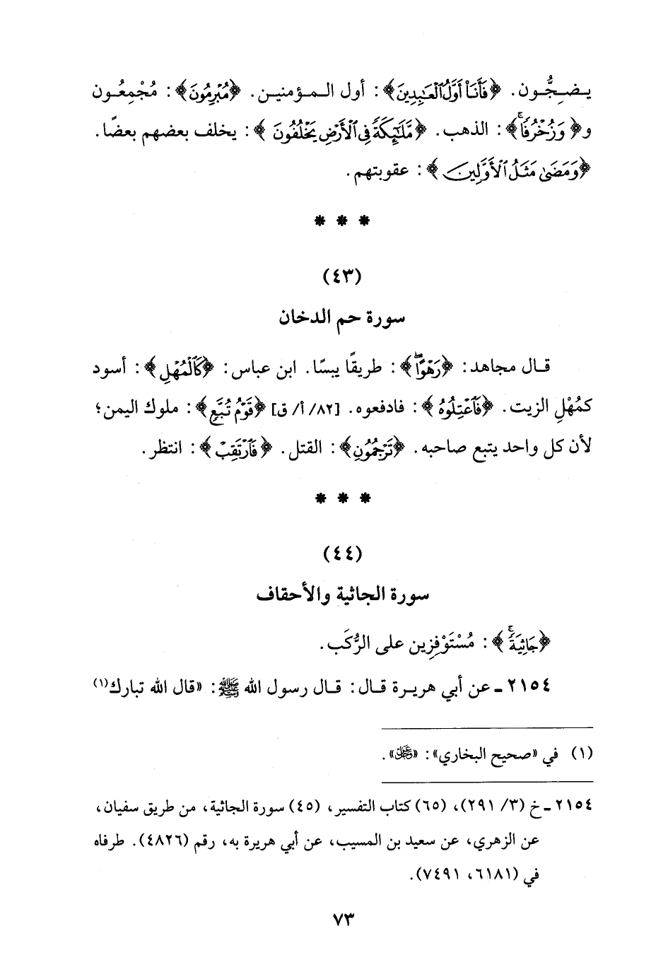 2154 - خ (3/ 291)، (65) كتاب التفسير، (45) سورة الجاثية، من طريق سفيان، عن الزهري، عن سعيد بن المسيب، عن أبي هريرة به، رقم (4826). طرفاه في (6181، 7491).