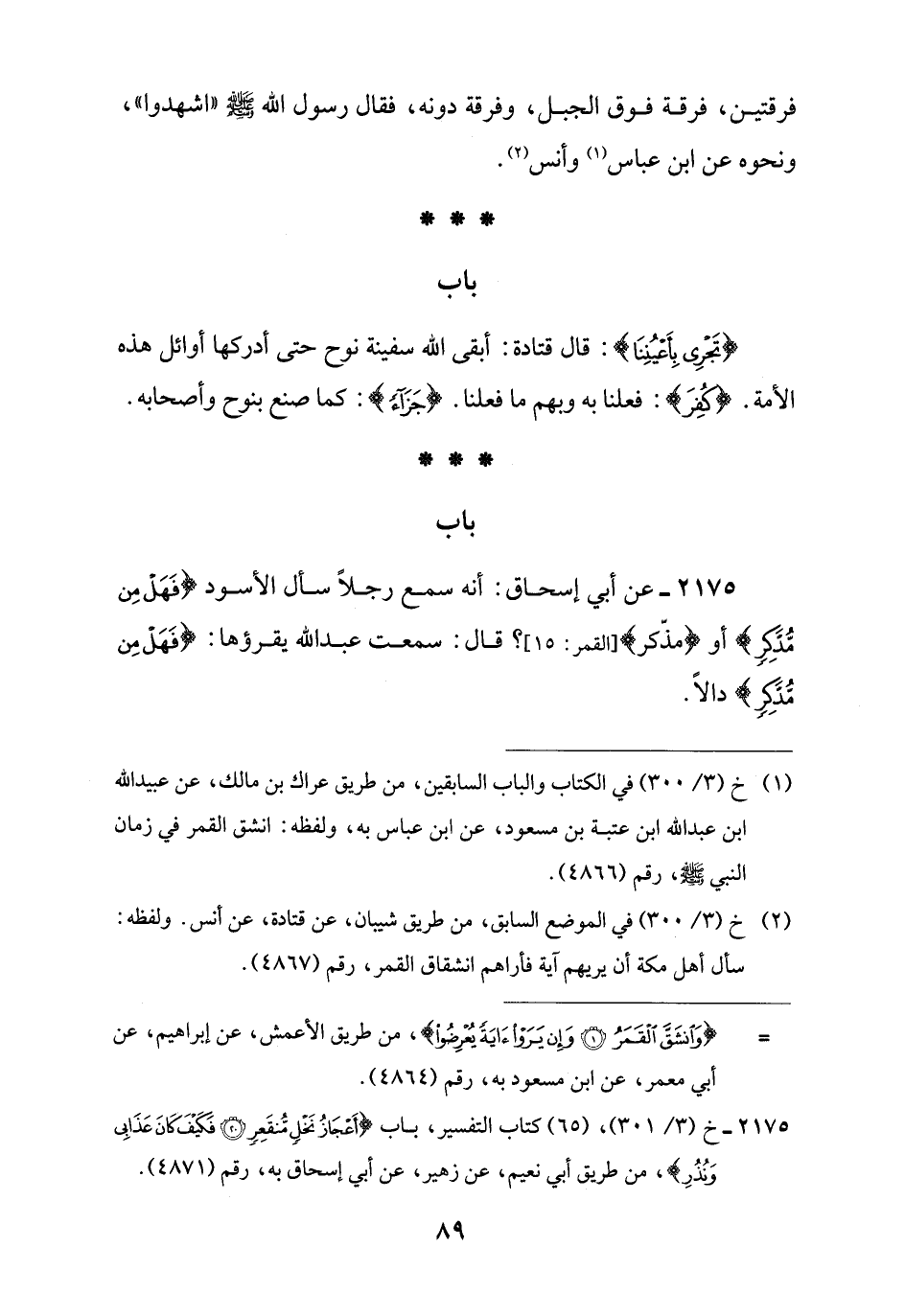 = {وَانْشَقَّ الْقَمَرُ (1) وَإِنْ يَرَوْا آيَةً يُعْرِضُوا}، من طريق الأعمش، عن إبراهيم، عن أبي معمر، عن ابن مسعود به، رقم (4864).