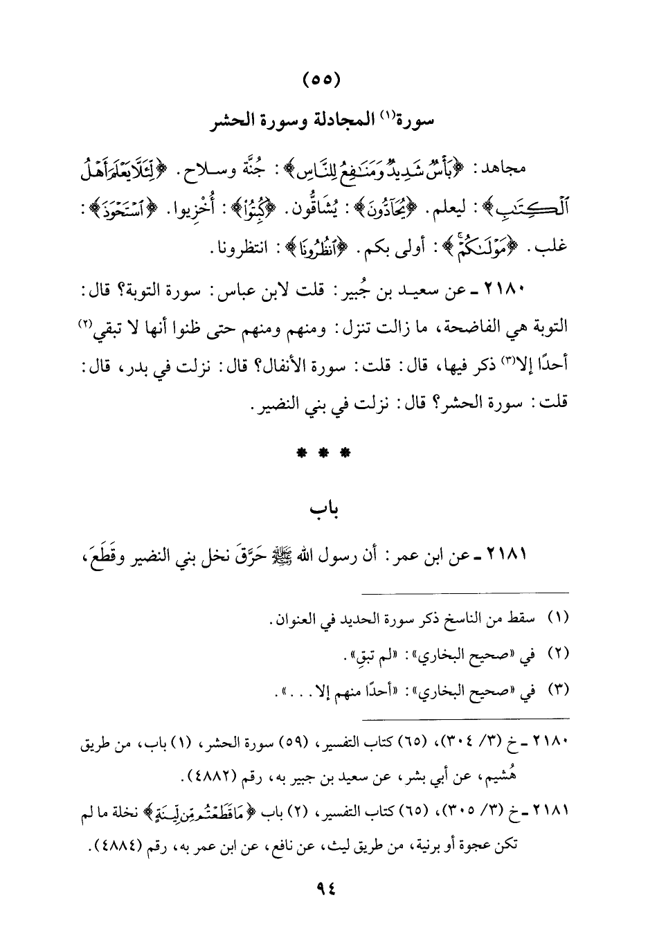 2180 - خ (3/ 304)، (65) كتاب التفسير، (59) سورة الحشر، (1) باب، من طريق هُشيم، عن أبي بشر، عن سعيد بن جبير به، رقم (4882).