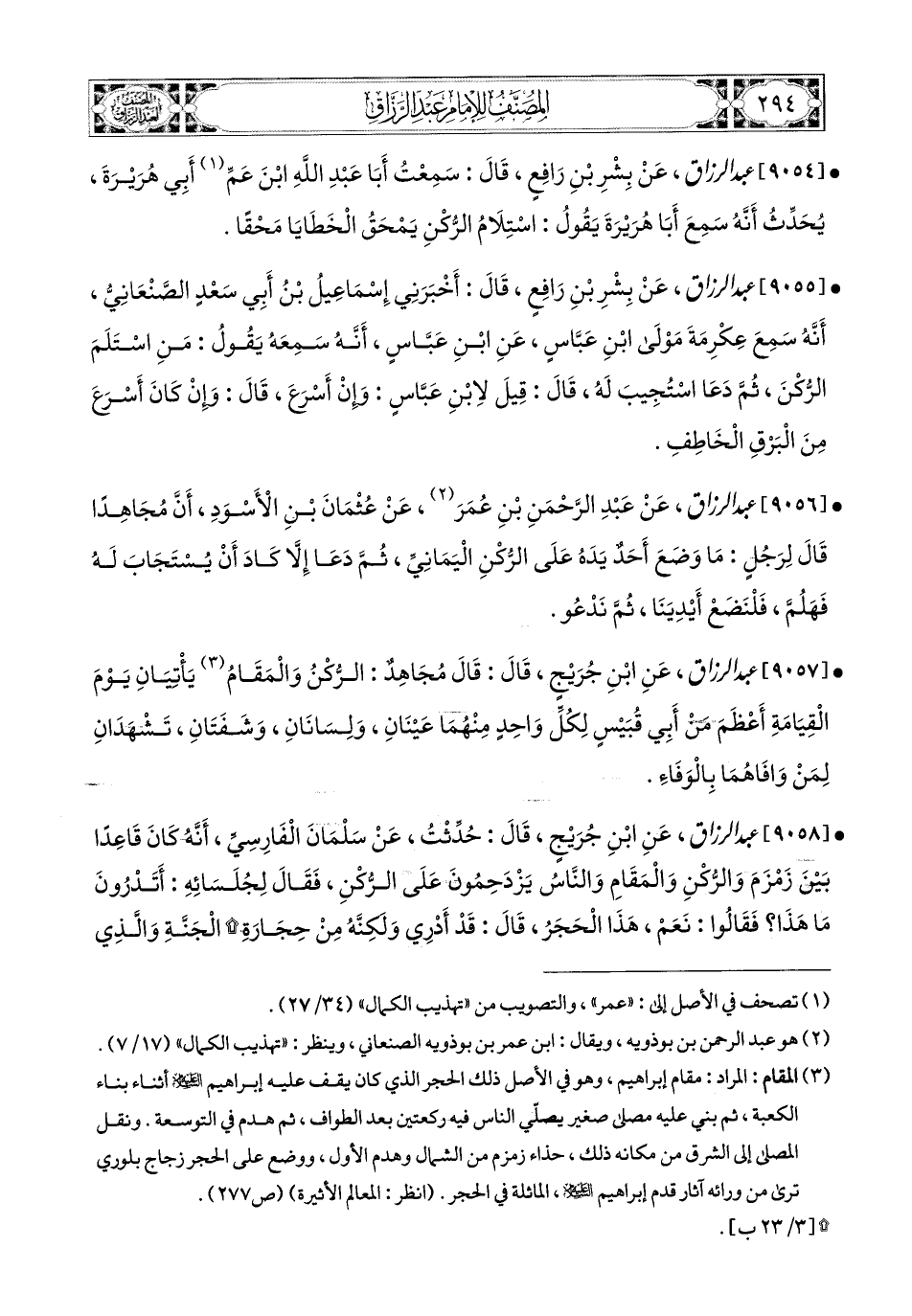 9054- عبد الرزاق، عَن بِشْرِ بْنِ رَافِعٍ، قَالَ: سَمِعْتُ أَبَا عَبدِ اللهِ، ابْنَ عَمِّ أَبِي هُرَيرَةَ يُحَدِّثُ، أَنَّهُ سَمِعَ أَبَا هُرَيرَةَ يَقُولُ: اسْتِلاَمُ الرُّكْنِ يَمْحَقُ الْخَطَايَا مَحْقًا.