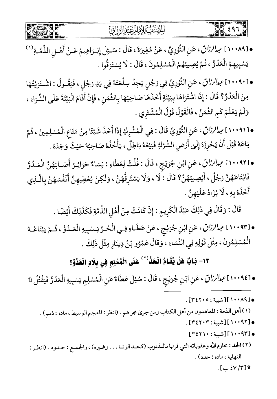 10089- عبد الرزاق، عَنِ الثَّورِيِّ، عَن مُغِيرَةَ قَالَ: سُئِلَ إِبرَاهِيمُ عَنْ أَهْلِ الذِّمَّةِ يَسْبِيهِمُ الْعَدُوُّ، ثُمَّ يُصِيبُهُمُ المُسْلِمُونَ، قَالَ: لاَ يُسْتَرَقُّوا.